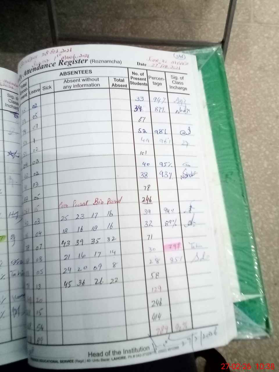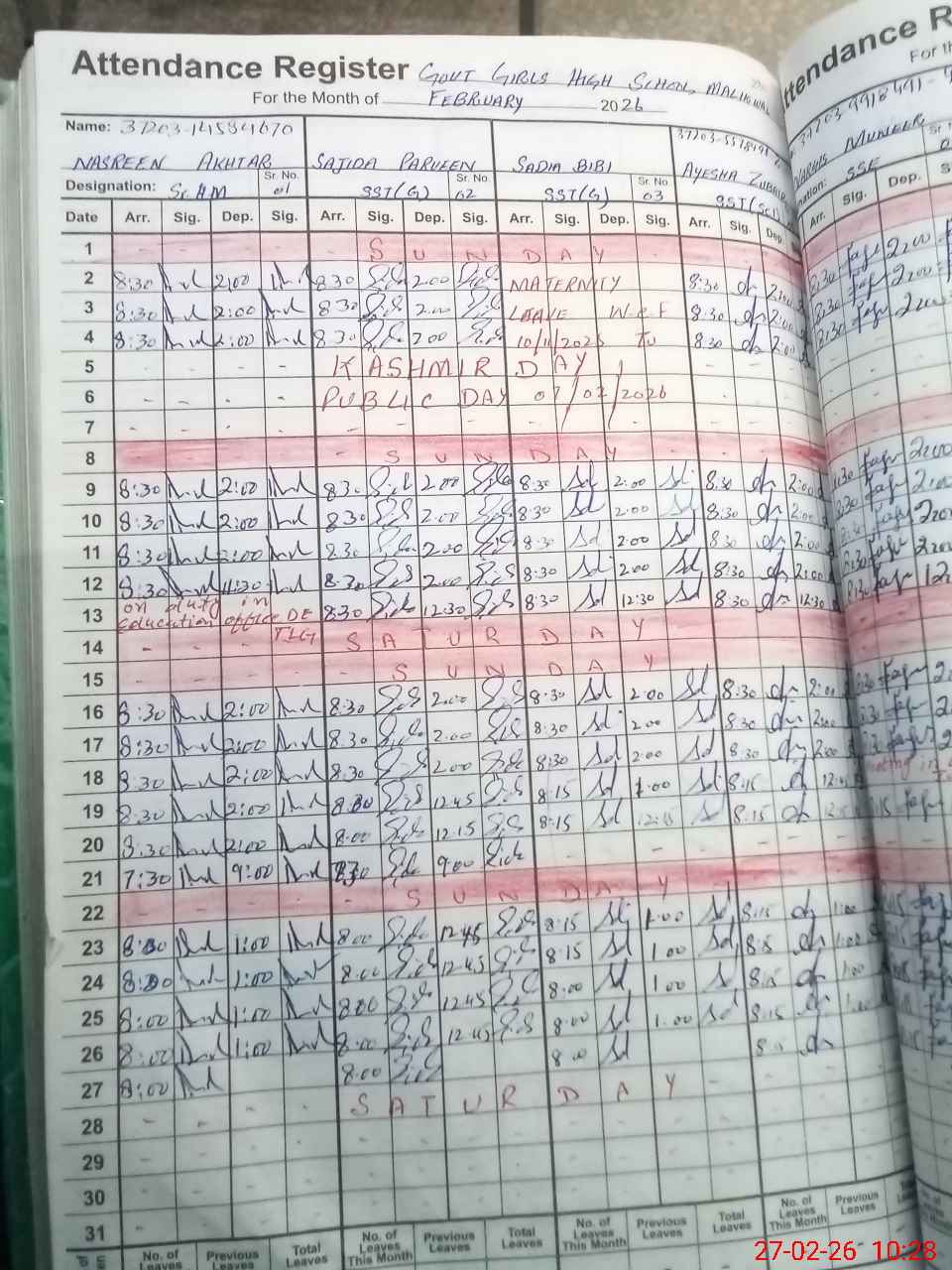 | 37**** | Ay**** Ka**** | PST Science/Maths | Regular | 0 | 0 | 0 | 0 | 0 | 0 | 0 | 0 | 0 | Maternity |