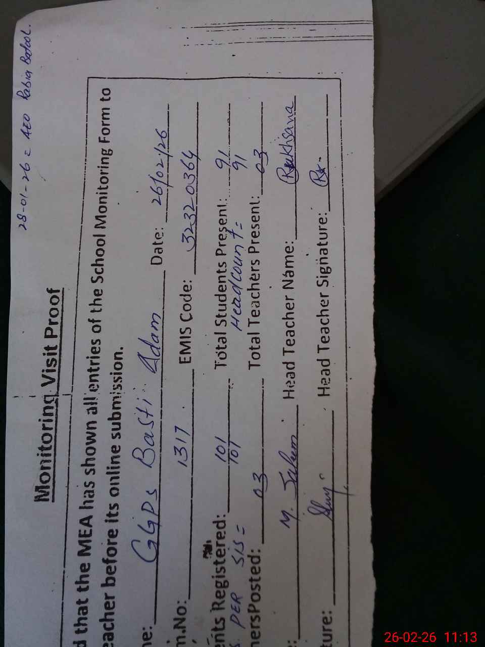 | EMIS Code: 32320364 | Name of School: GGPS BASTI ADAM | |||