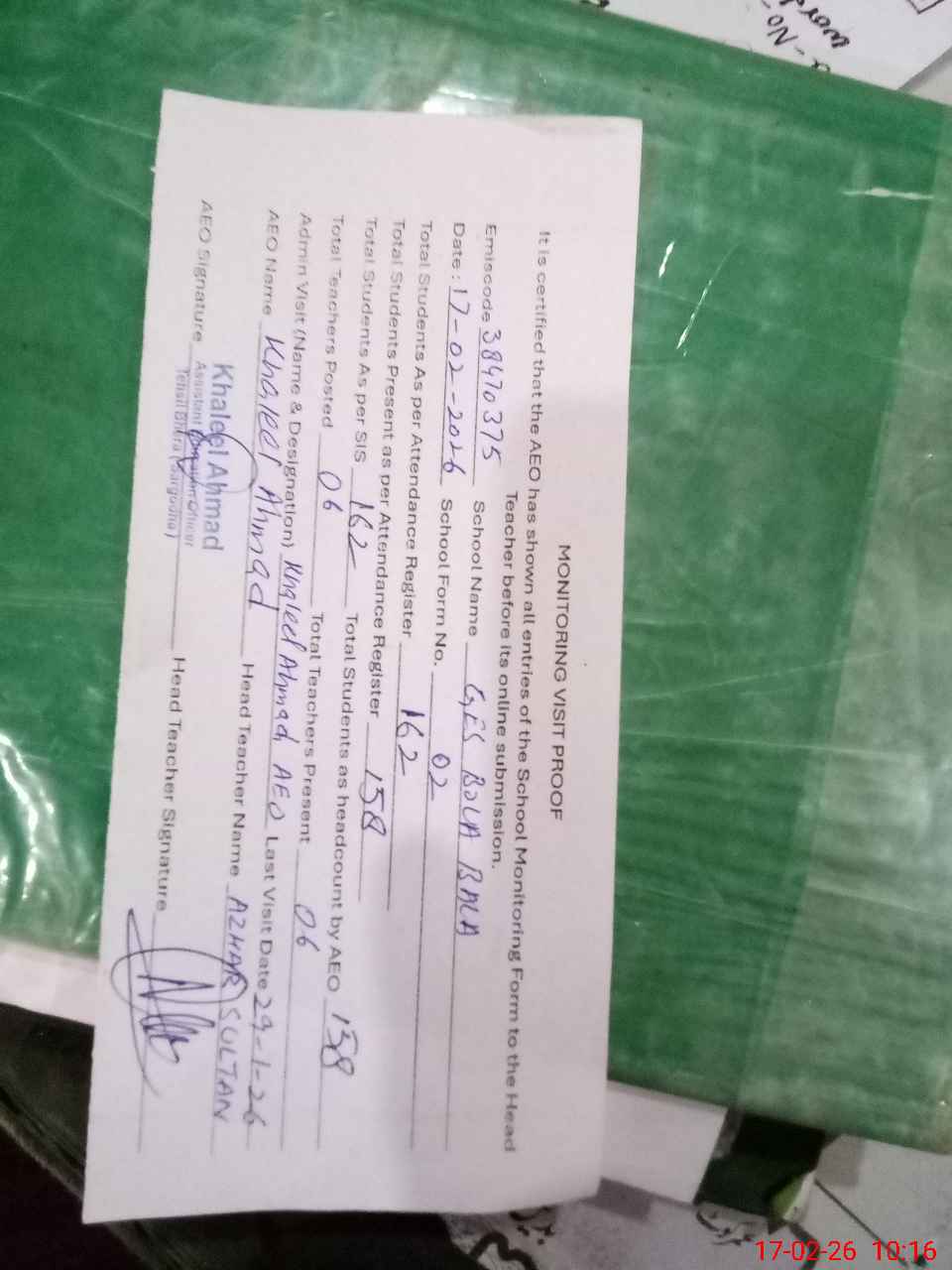 | Name: MU**** AZ**** SU**** Designation: (School Headmaster's/Headmistress's) SST Phone/Cell Number: 03**** |