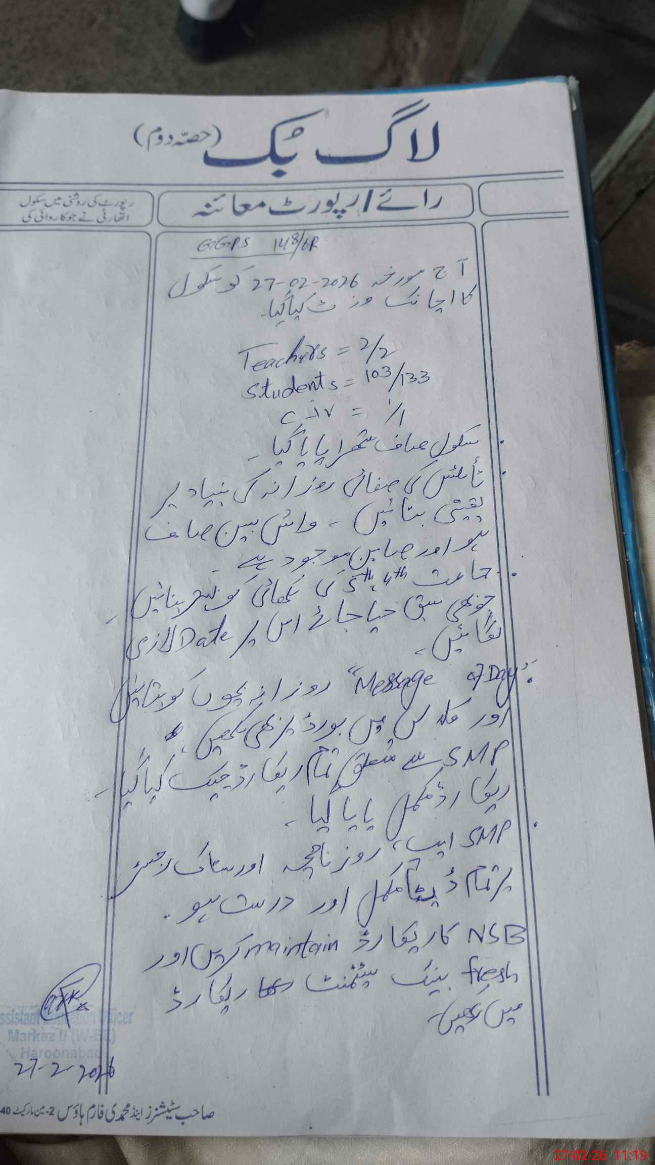 | Certified that this School was Inspected by the Undersigned MEA/DMO Today and the Information Stated Above is as Per Record. | |||||