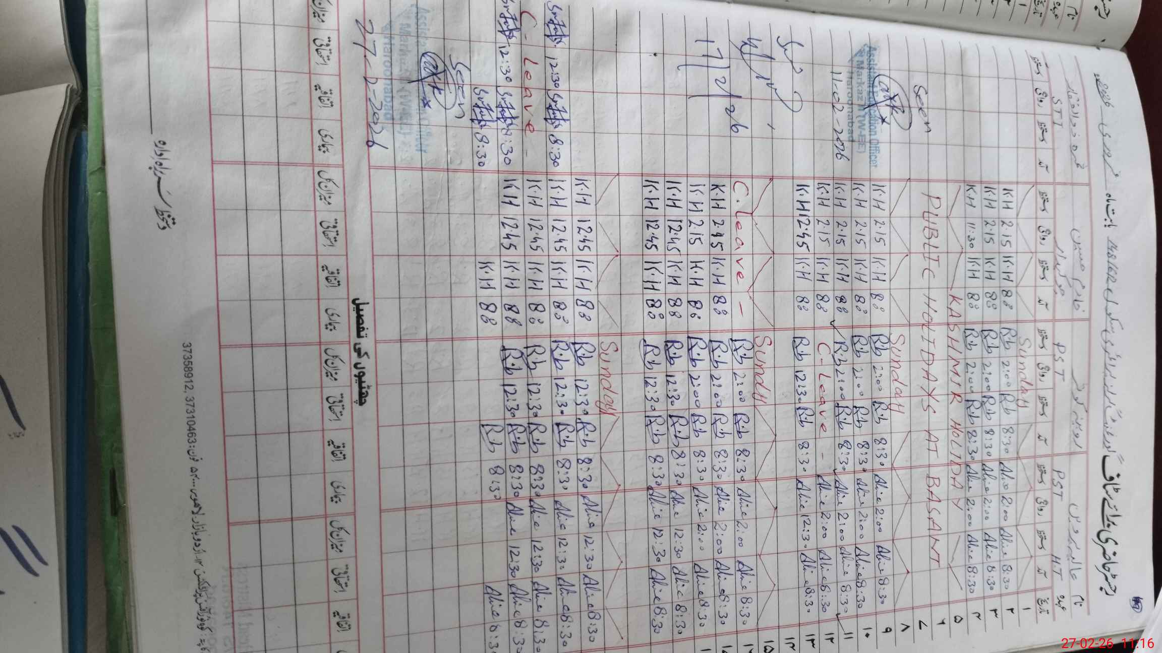 | CNIC | Full Name | Designation | R/C | Absence During Last Calender Month |