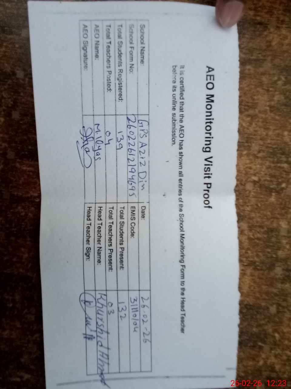 | EMIS Code: 31110104 | Name of School: GPS AZIZ DIN | |||