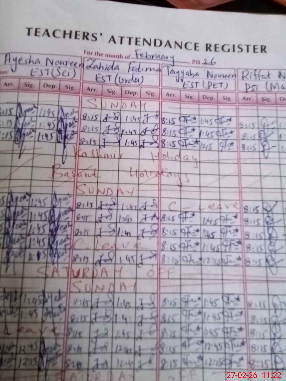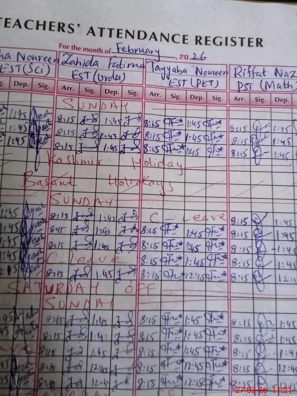 | 37**** | Sh**** Bi | PST Science/Maths | Regular | 0 | 0 | 0 | 0 | 0 | 0 | 0 | 0 | 0 | Maternity |