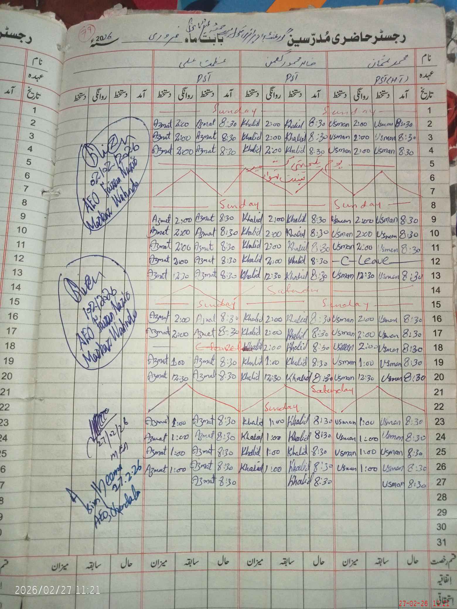 | CNIC | Full Name | Designation | R/C | Absence During Last Calender Month |