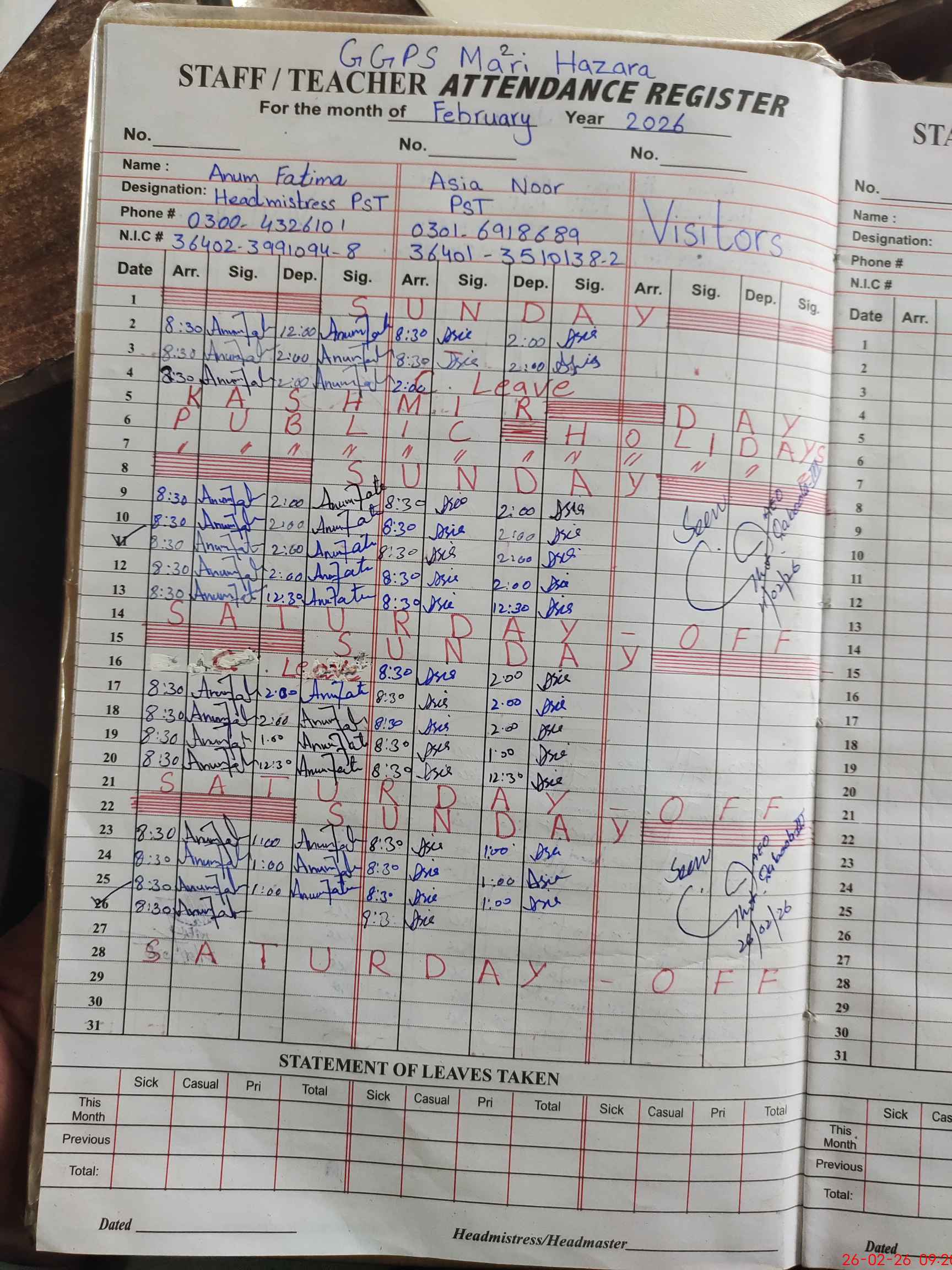 | Name: AN**** FA**** Designation: (School Headmaster's/Headmistress's) PST Phone/Cell Number: 03**** |