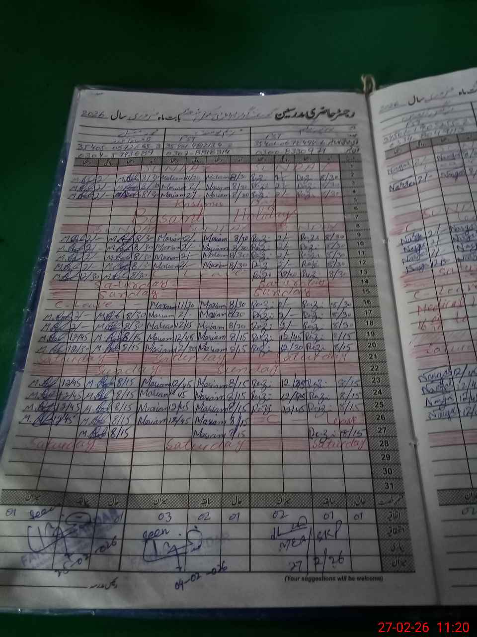 | Monitoring Date: 27-02-2026 | Start Time: 27-02-2026 10:58 AM | End Time: 27-02-2026 11:26 AM | Name of MEA: Ta**** Hu**** | |