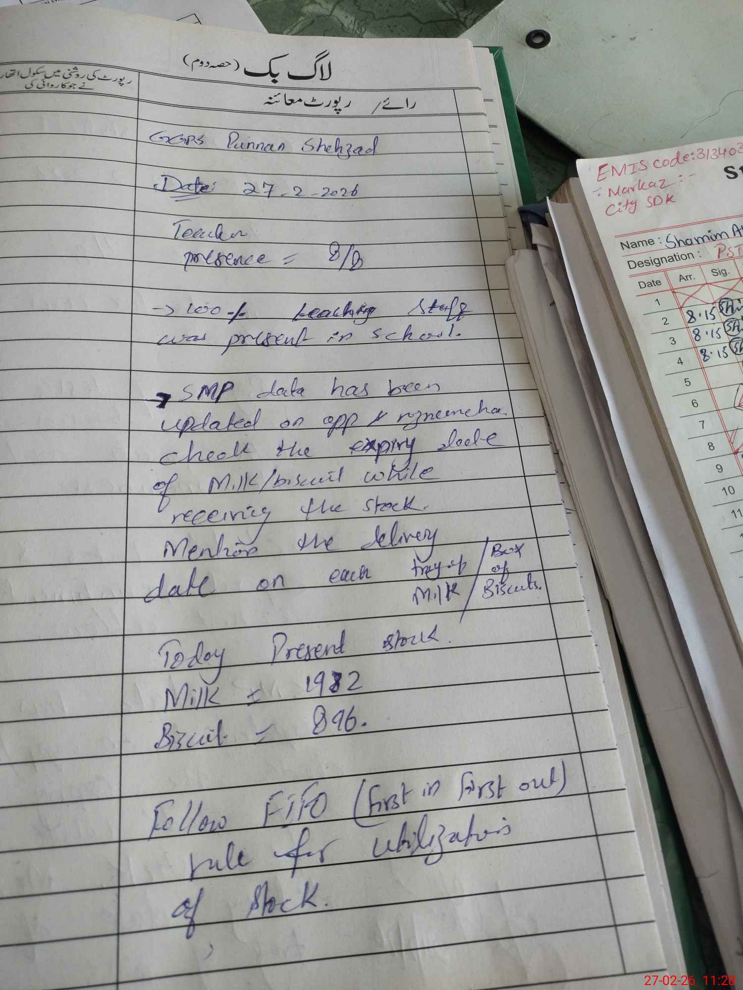 | Attendance Register | Head Teacher | MEA with School | Visit Proof |