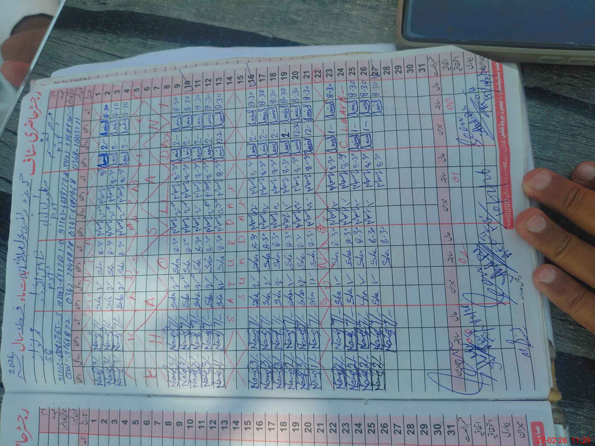 | CNIC | Full Name | Designation | R/C | Absence During Last Calender Month |