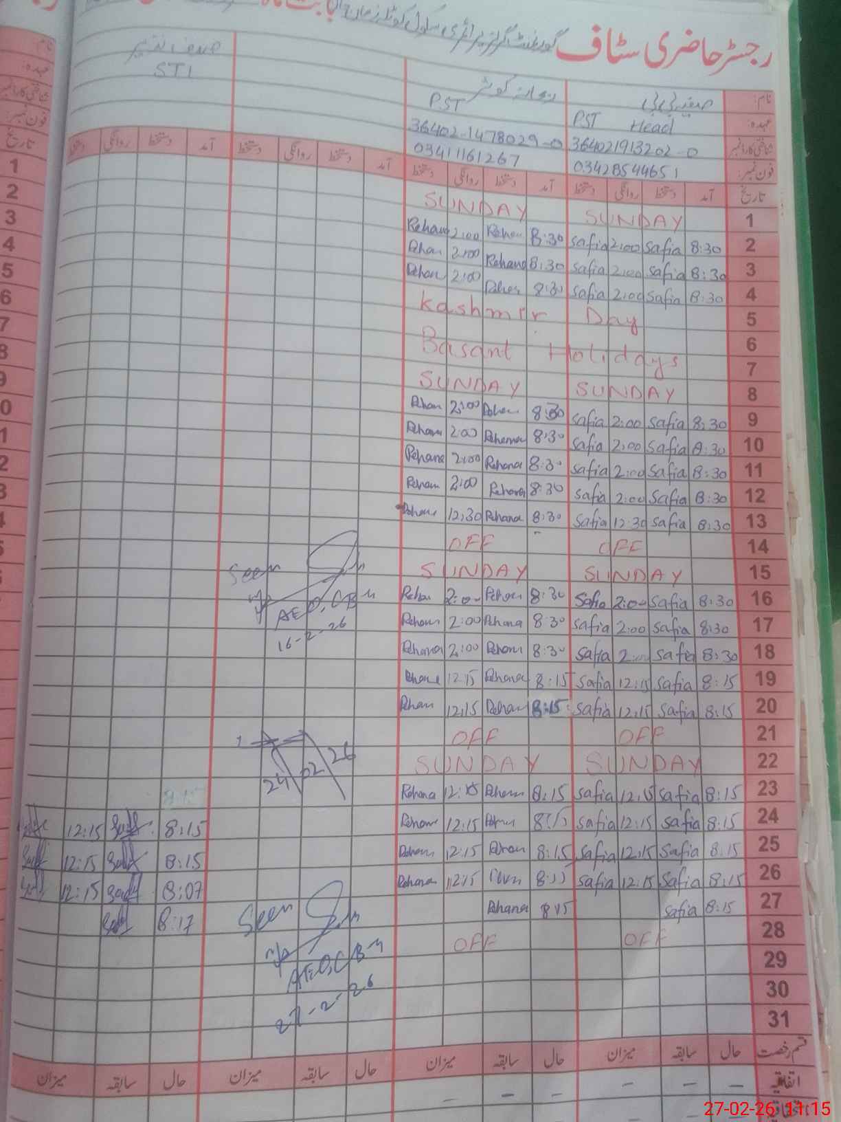 | Name: Sa**** Bi**** Designation: (School Headmaster's/Headmistress's) PST Phone/Cell Number: 03**** |