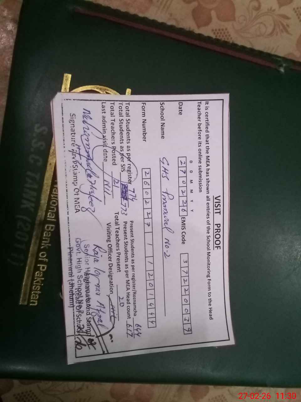 | EMIS Code: 37220039 | Name of School: GHS PINAN WAL No. 2 | |||