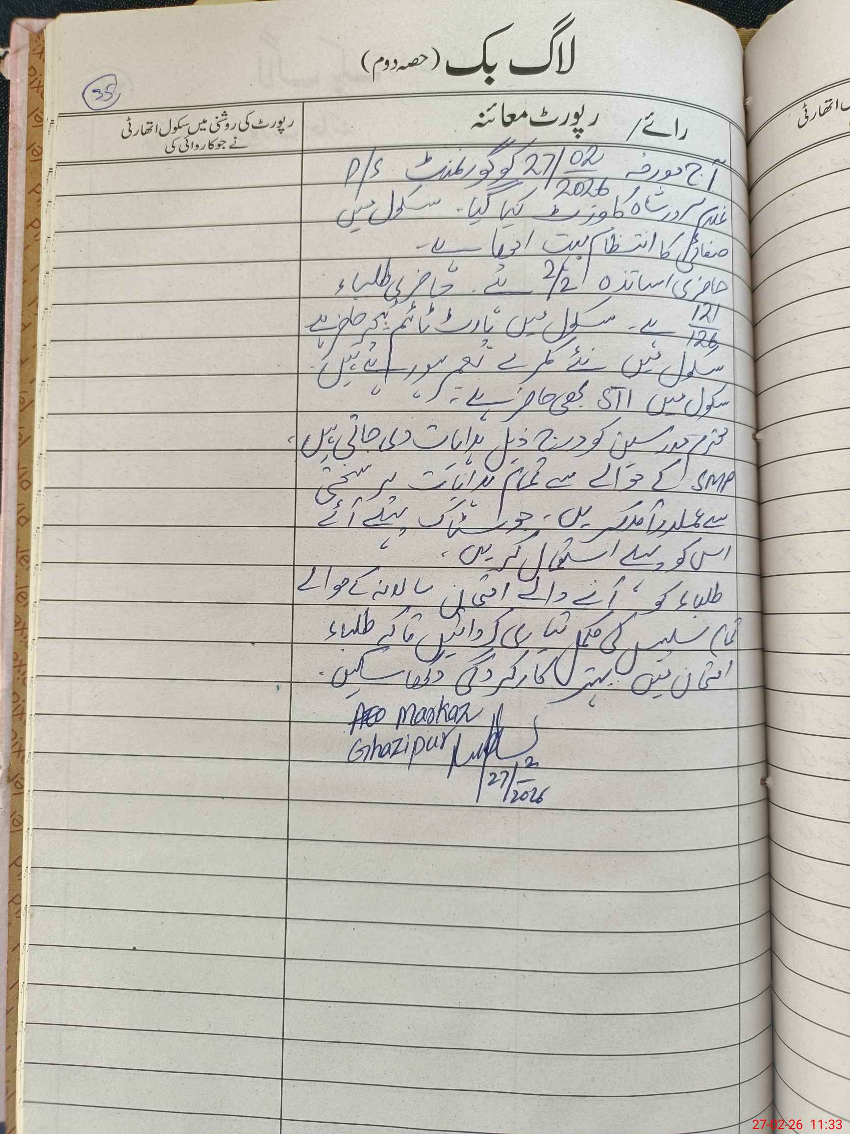 | Monitoring Date: 27-02-2026 | Start Time: 27-02-2026 11:04 AM | End Time: 27-02-2026 11:33 AM | Name of MEA: Ru**** Ku**** | |