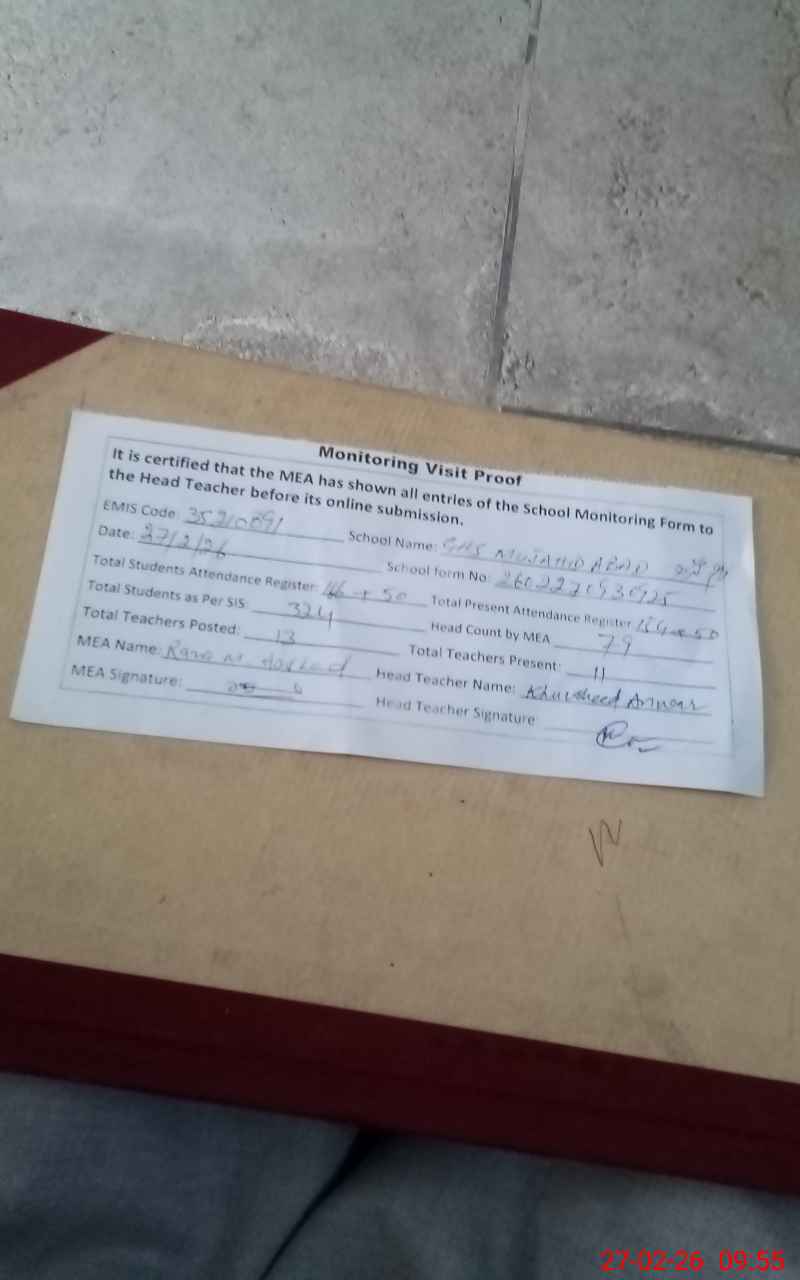 | Attendance Register | Head Teacher | MEA with School | Visit Proof |