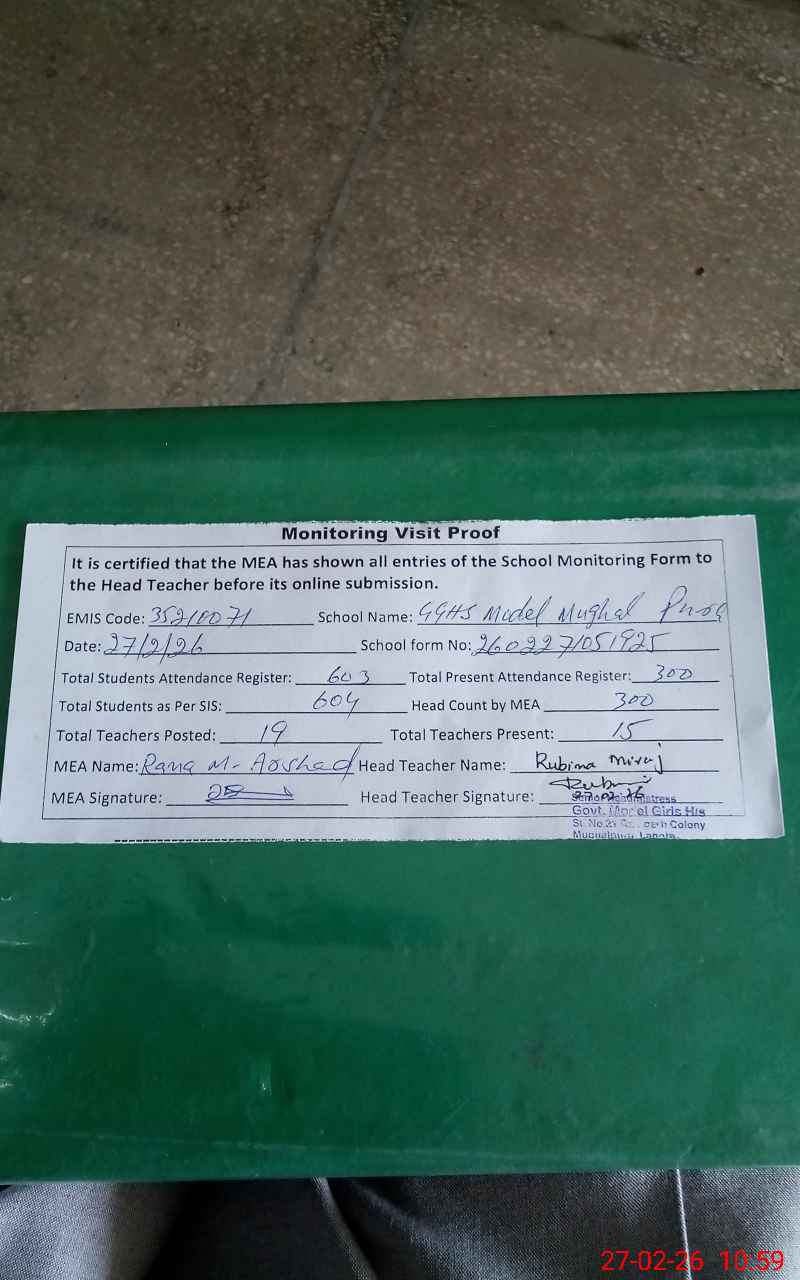 | EMIS Code: 35210071 | Name of School: GGHS MODEL MUGALPURA | |||