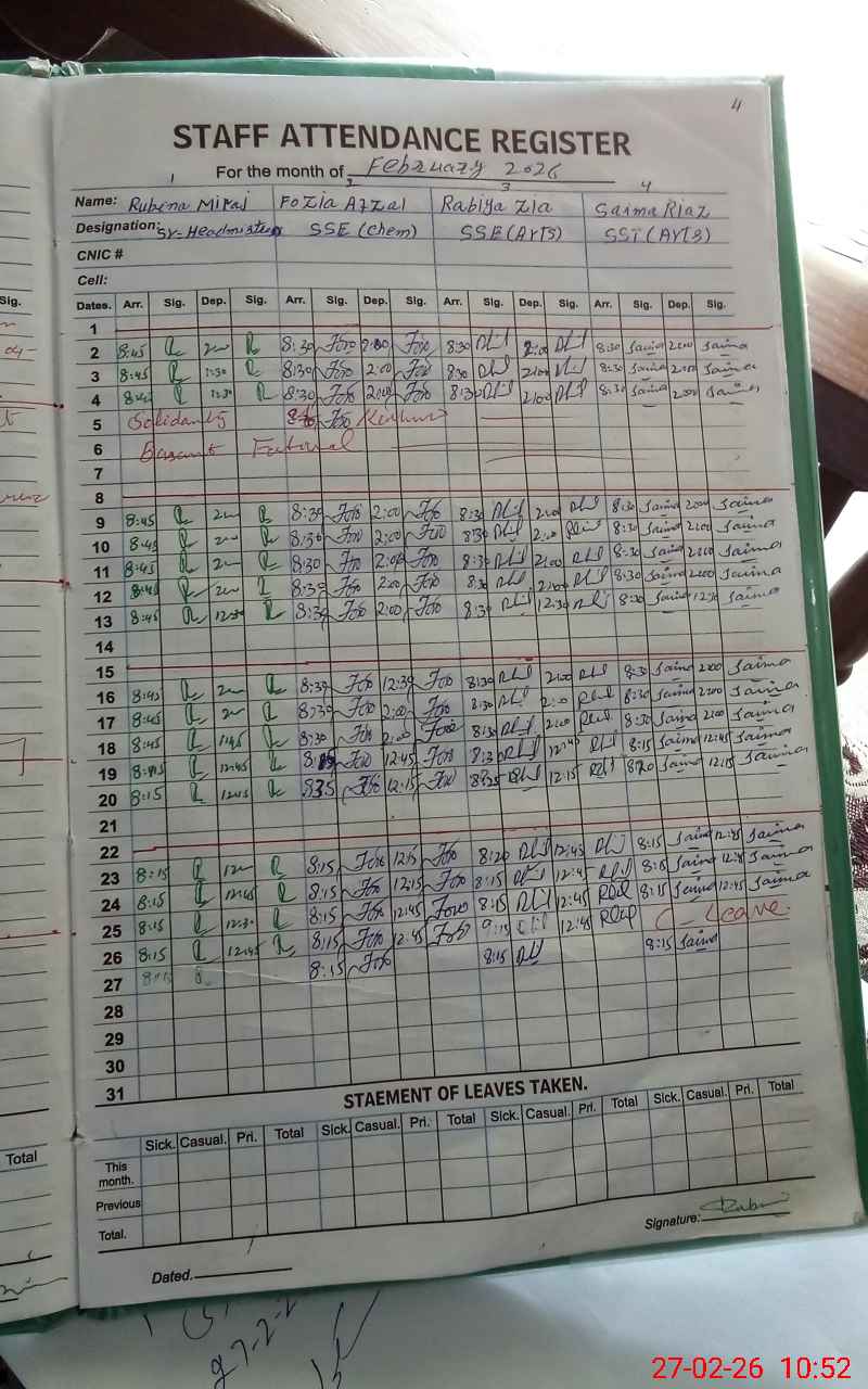 | 34**** | As**** Wa**** Mu**** | PST Science/Maths | Regular | 0 | 0 | 31 | 0 | 0 | 0 | 0 | 0 | 0 | Absent (Un-Authorized) |