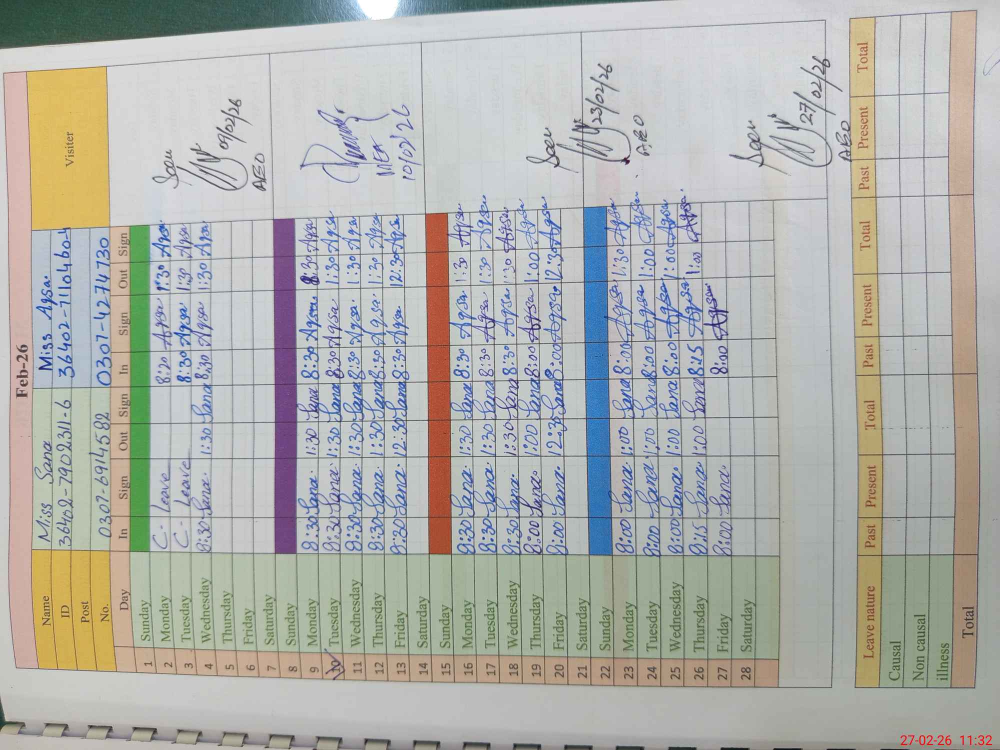 | Leave | Duty | Absent | Maternity | Medical | Ex- Pak |