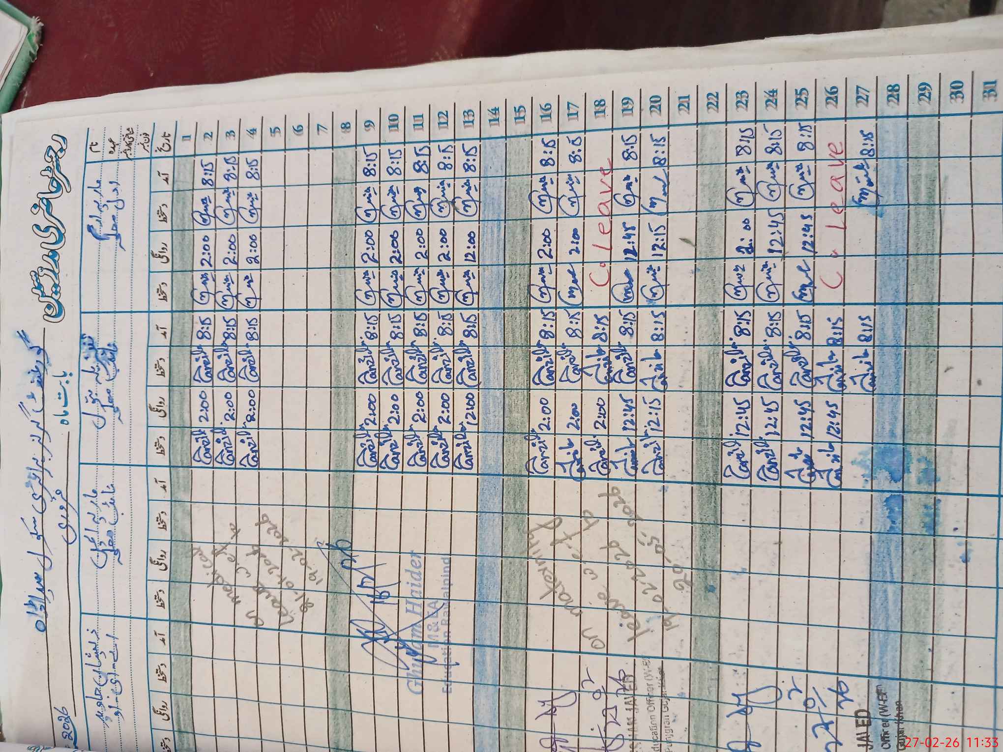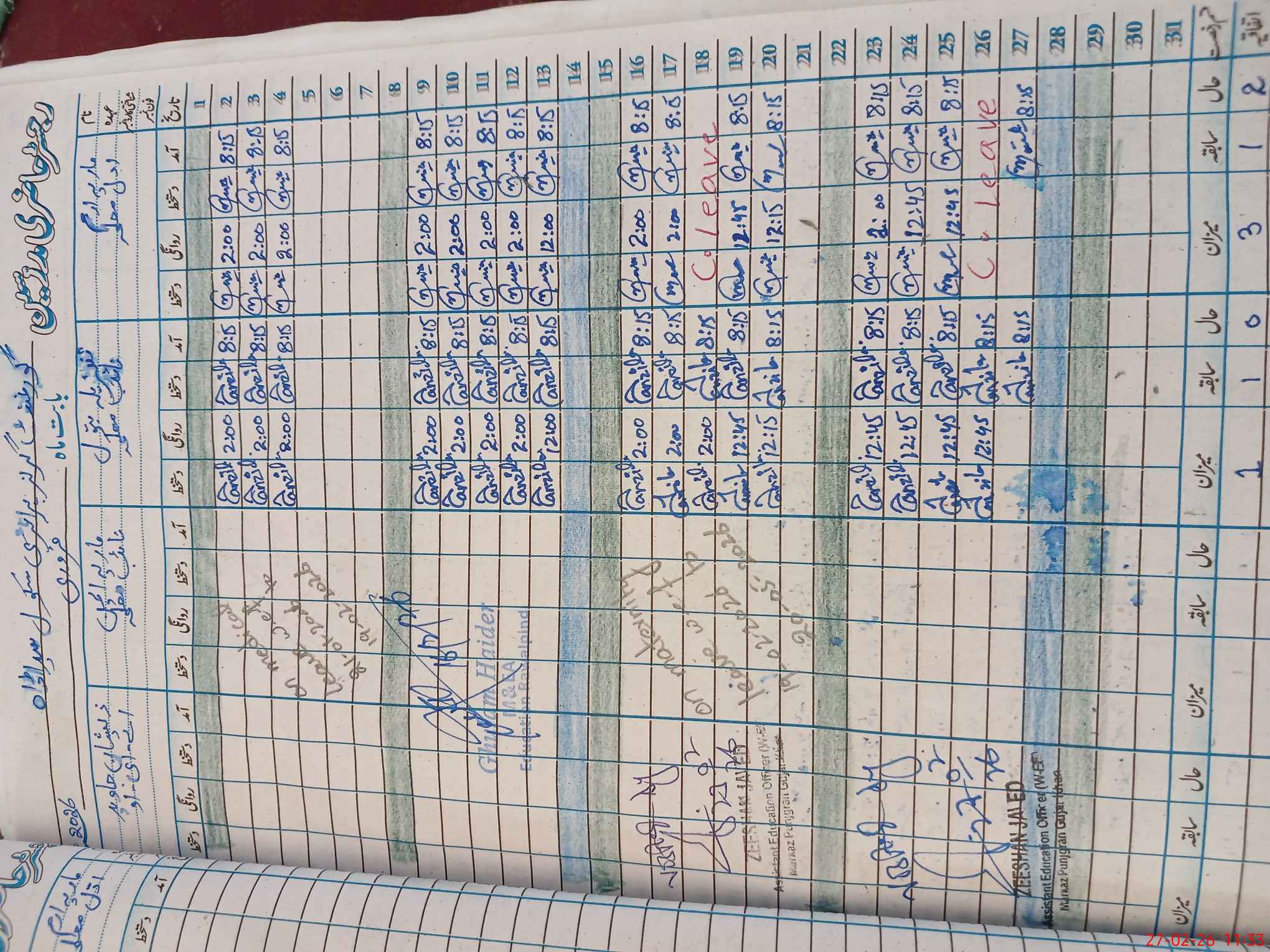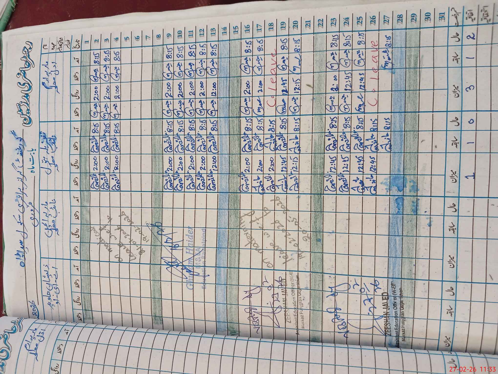 | CNIC | Full Name | Designation | R/C | Absence During Last Calender Month |