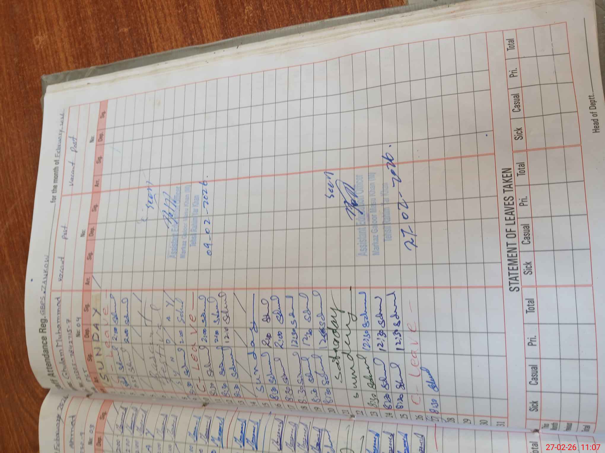 | Leave | Duty | Absent | Maternity | Medical | Ex- Pak |