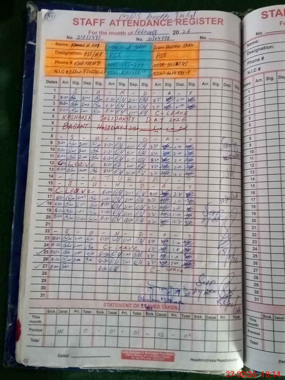 | 35**** | Im**** Hu**** Sh**** | PST Science/Maths | Regular | 2 | 0 | 0 | 0 | 0 | 0 | 0 | 0 | 2 | Casual |