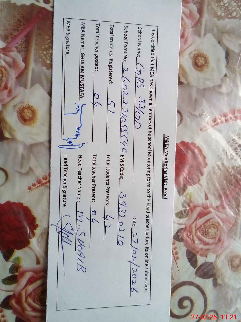 | EMIS Code: 39320210 | Name of School: GPS CHAK 33/G.D | |||