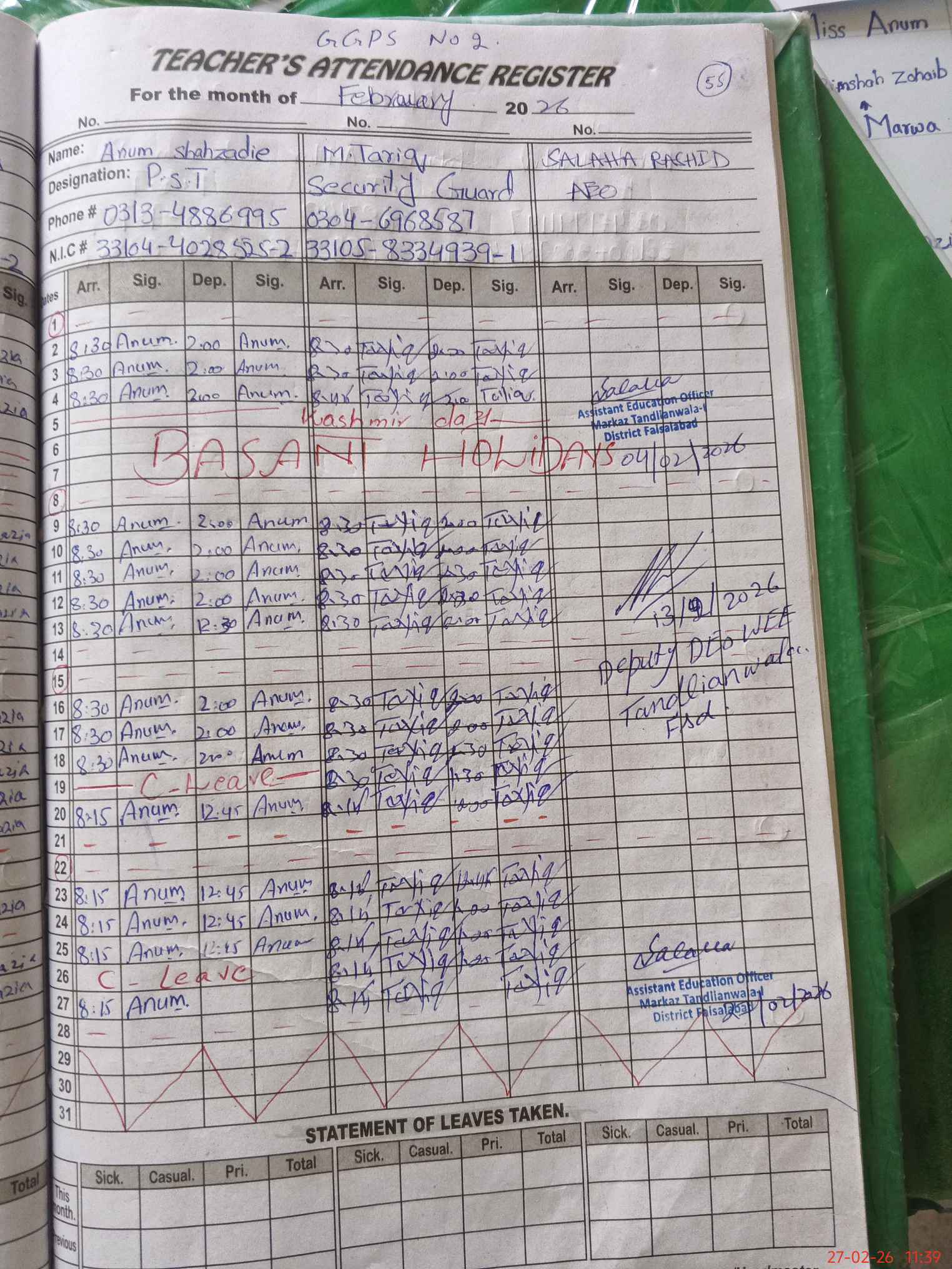 | Name: FA**** MU**** Designation: (School Headmaster's/Headmistress's) PST Phone/Cell Number: 03**** |