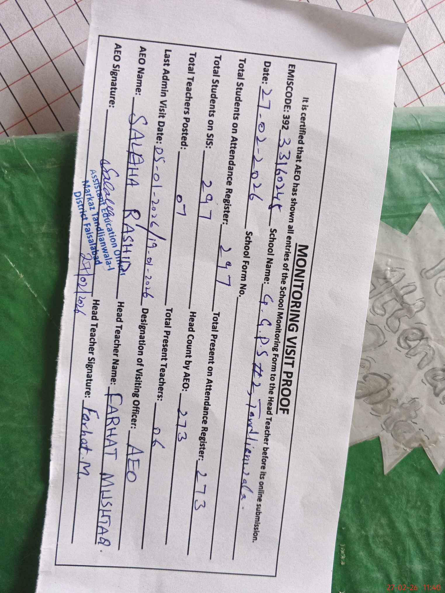 | EMIS Code: 33160245 | Name of School: GGPS 2 TANDLIAN WALA | |||