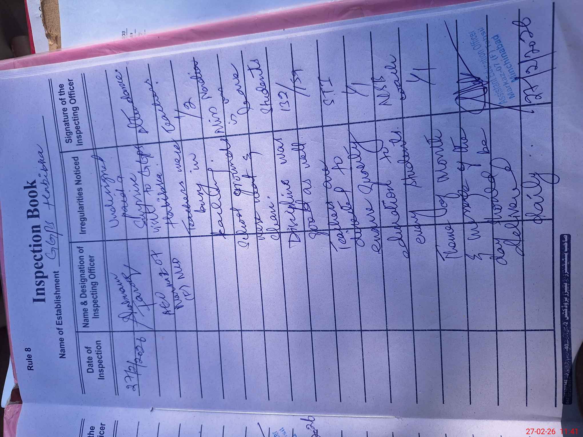 | Certified that this School was Inspected by the Undersigned MEA/DMO Today and the Information Stated Above is as Per Record. | |||||