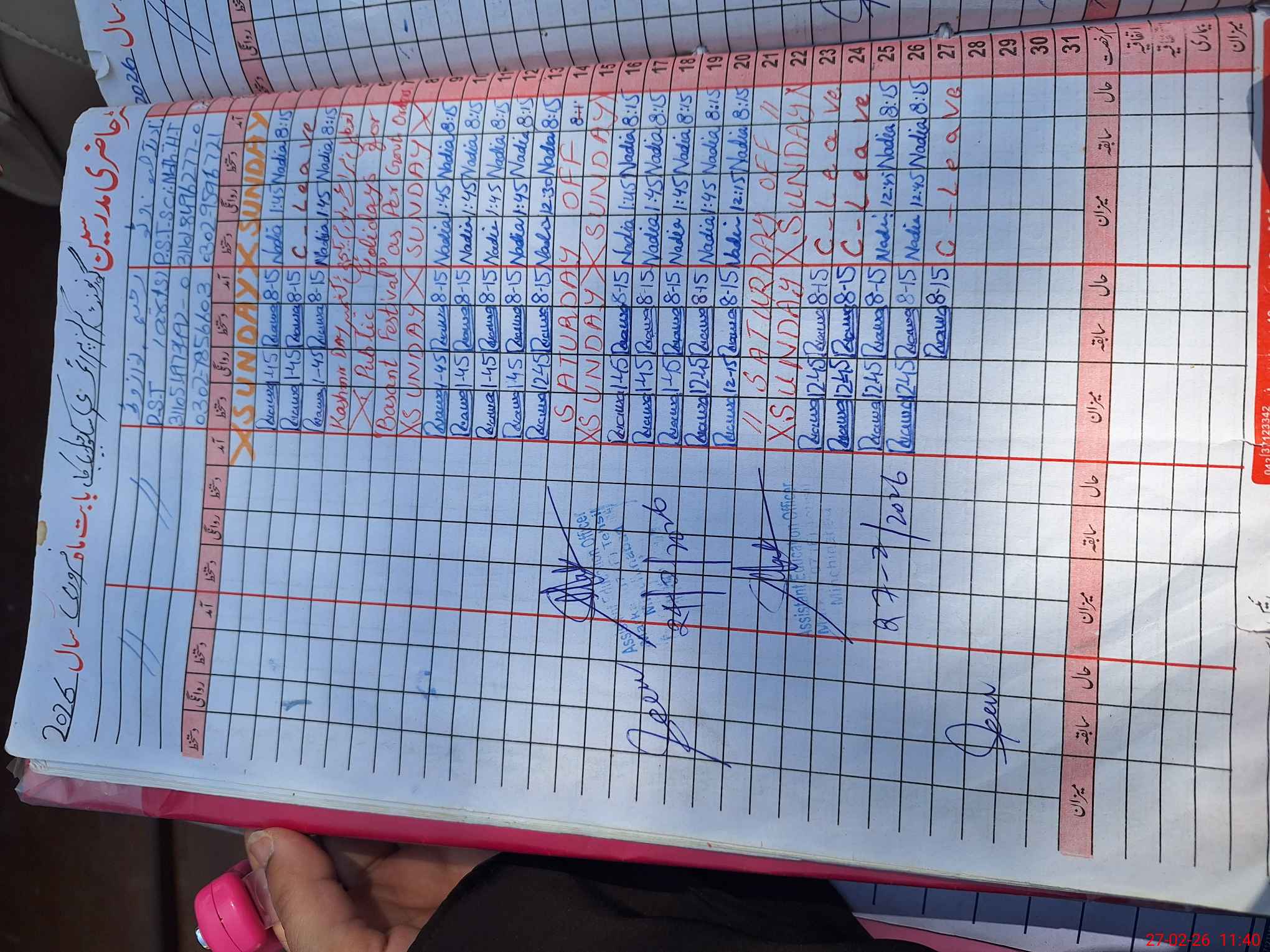 | CNIC | Full Name | Designation | R/C | Absence During Last Calender Month |
