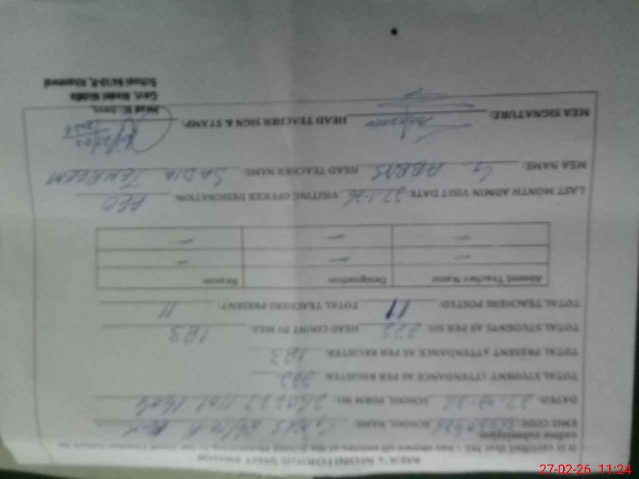 | Attendance Register | Head Teacher | MEA with School | Visit Proof |