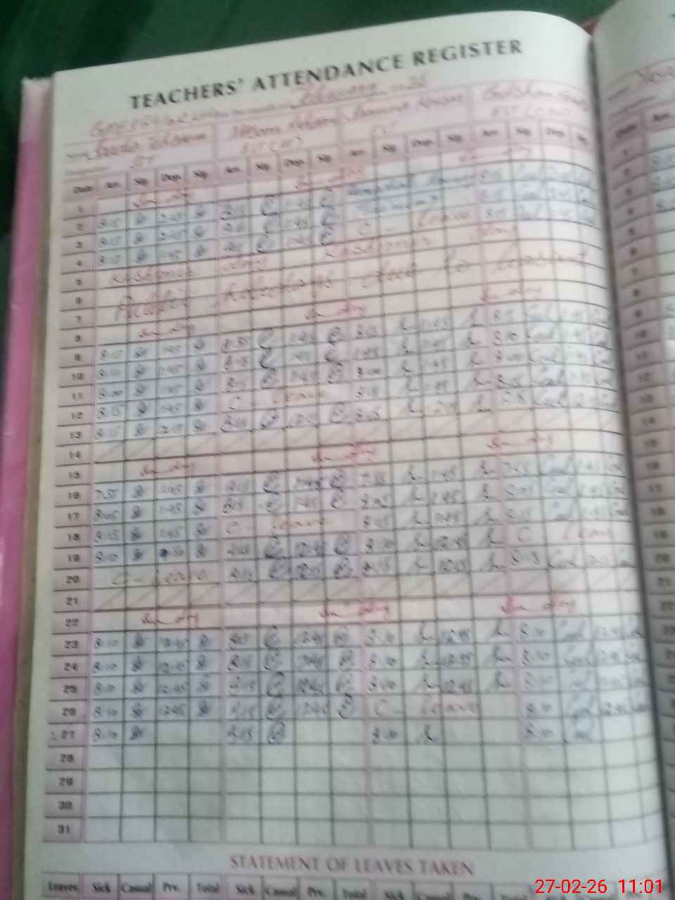 | Leave | Duty | Absent | Maternity | Medical | Ex- Pak |