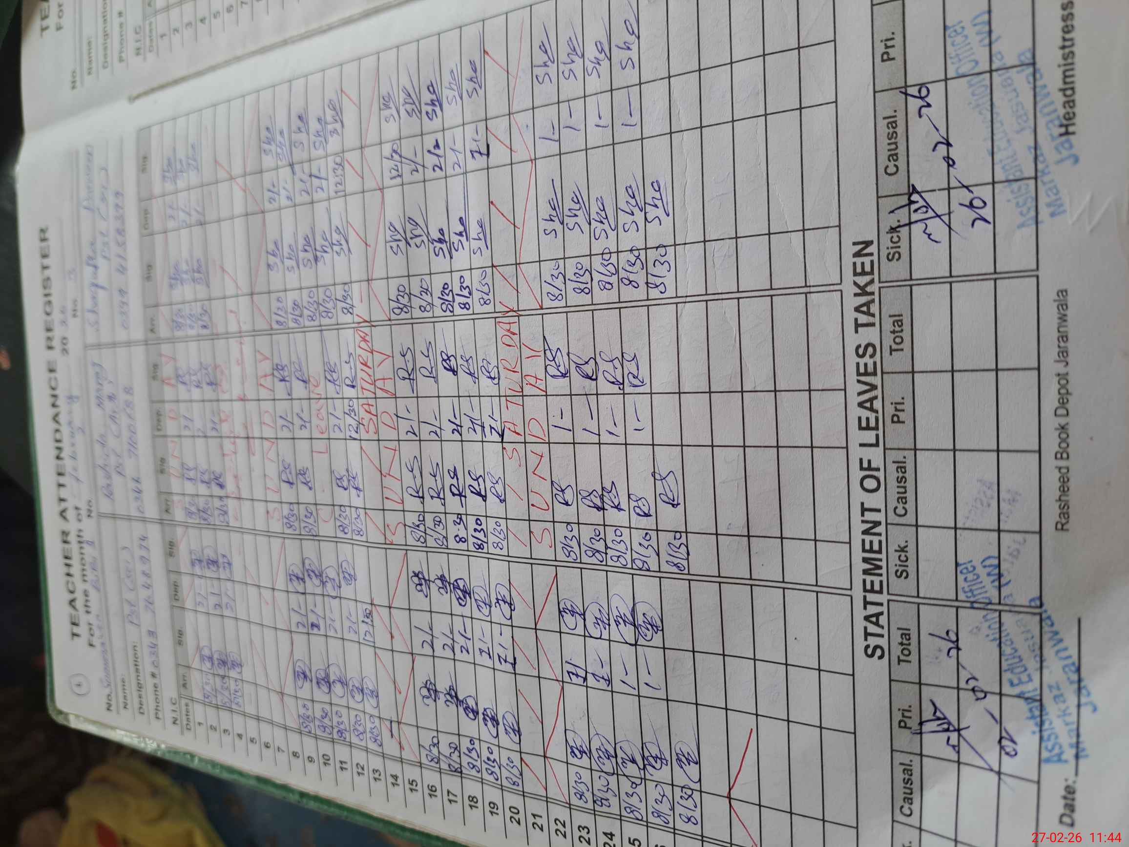 | Name: SU**** BI**** Designation: (School Headmaster's/Headmistress's) PST Phone/Cell Number: 03**** |