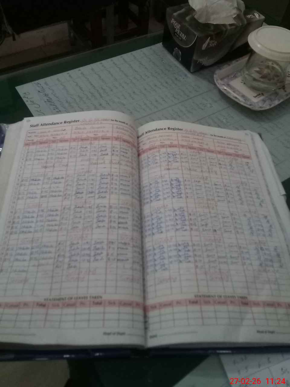 | Leave | Duty | Absent | Maternity | Medical | Ex- Pak |