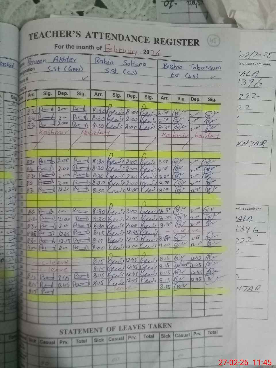 | 36**** | Ra**** Su**** | SST Computer Science | Regular | 0 | 0 | 0 | 0 | 0 | 0 | 0 | 0 | 0 | Casual |