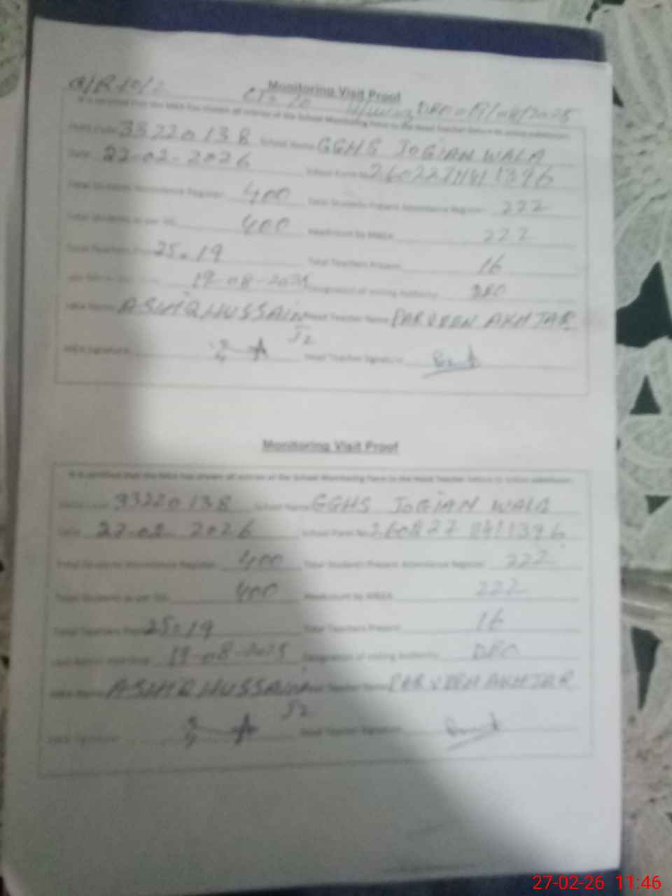 | EMIS Code: 33220138 | Name of School: GGHS JOGIAN WALA | |||