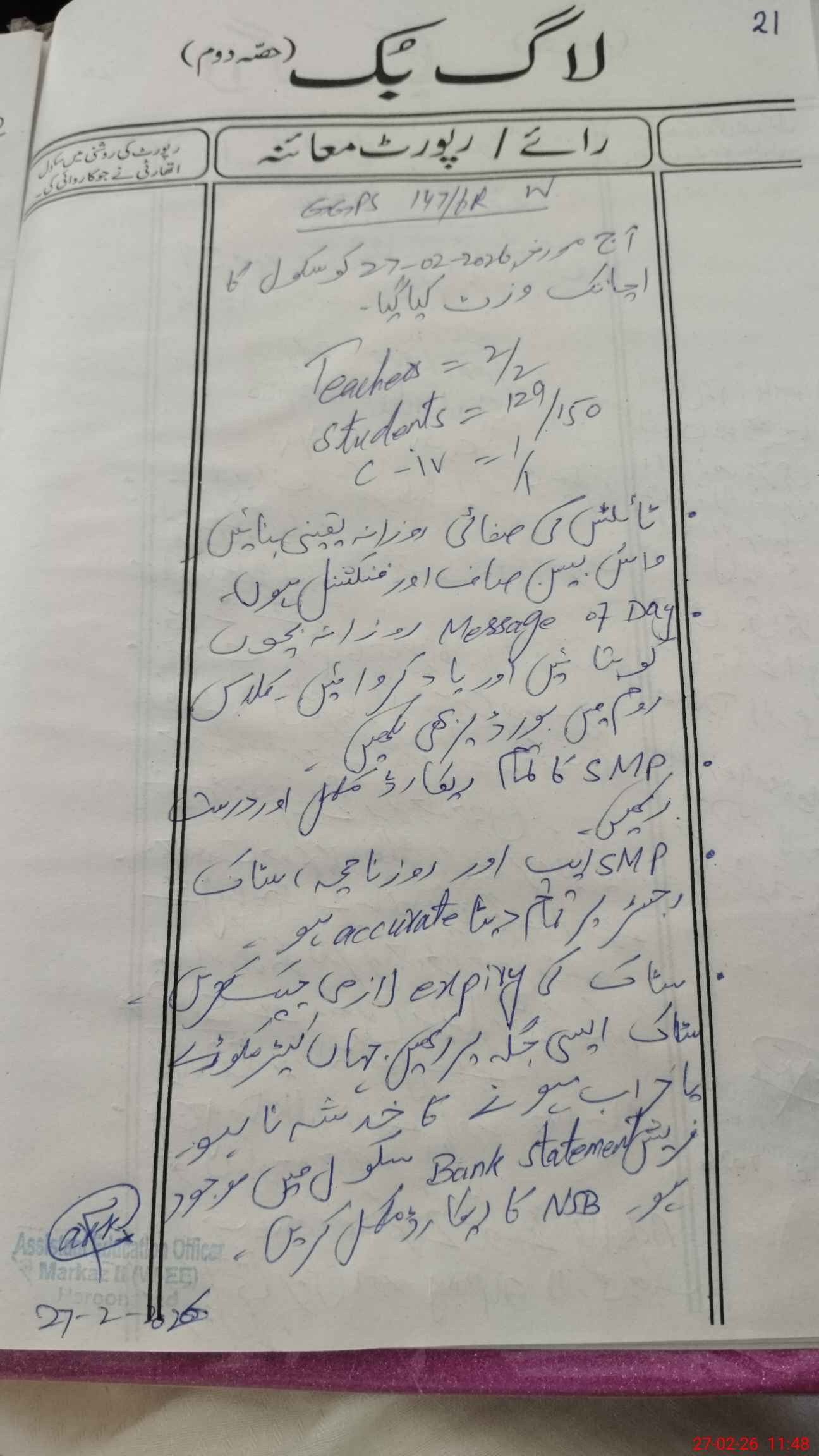 | Certified that this School was Inspected by the Undersigned MEA/DMO Today and the Information Stated Above is as Per Record. | |||||