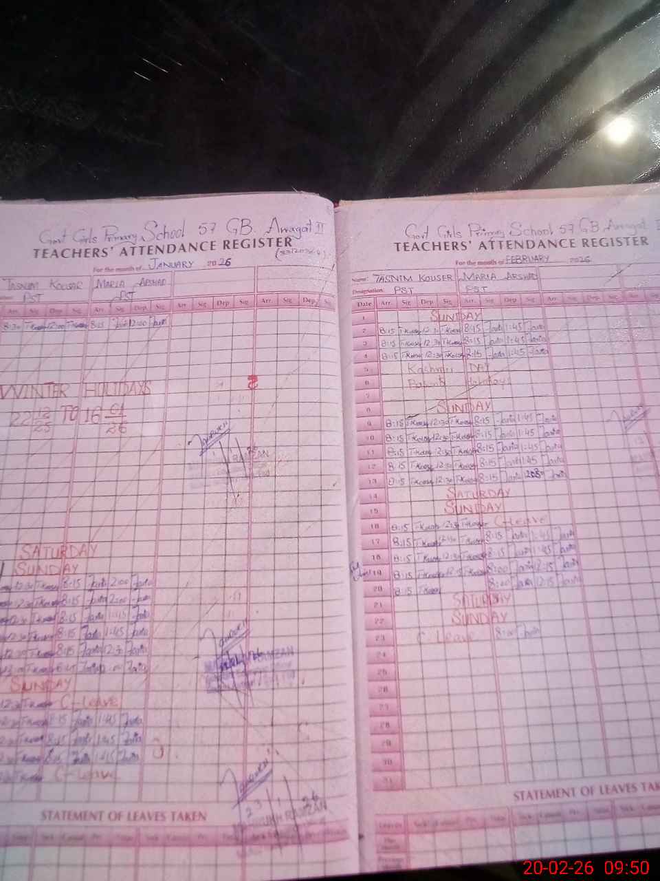 | Leave | Duty | Absent | Maternity | Medical | Ex- Pak |