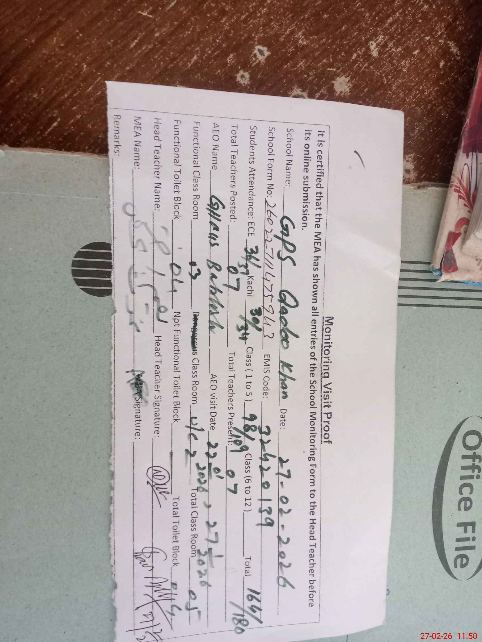 | EMIS Code: 32420139 | Name of School: GPS BASTI QADOO KHAN | |||