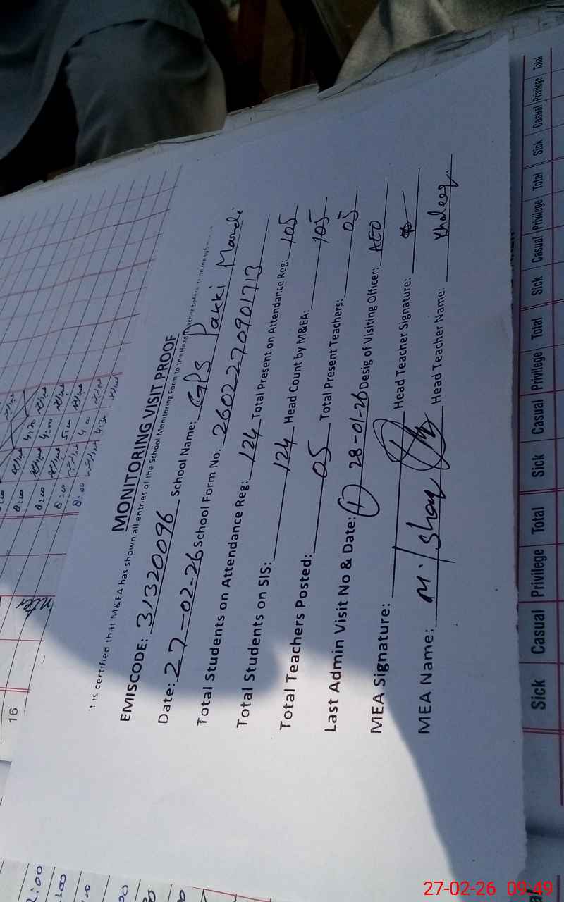 | EMIS Code: 31320096 | Name of School: GPS PAKI MANDI JADEED | |||