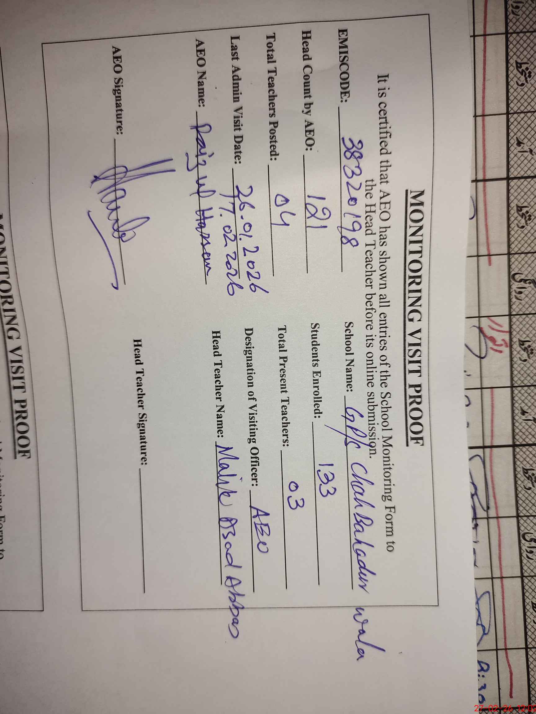 | EMIS Code: 38320198 | Name of School: GPS CHAH BAHADUR WALA | |||