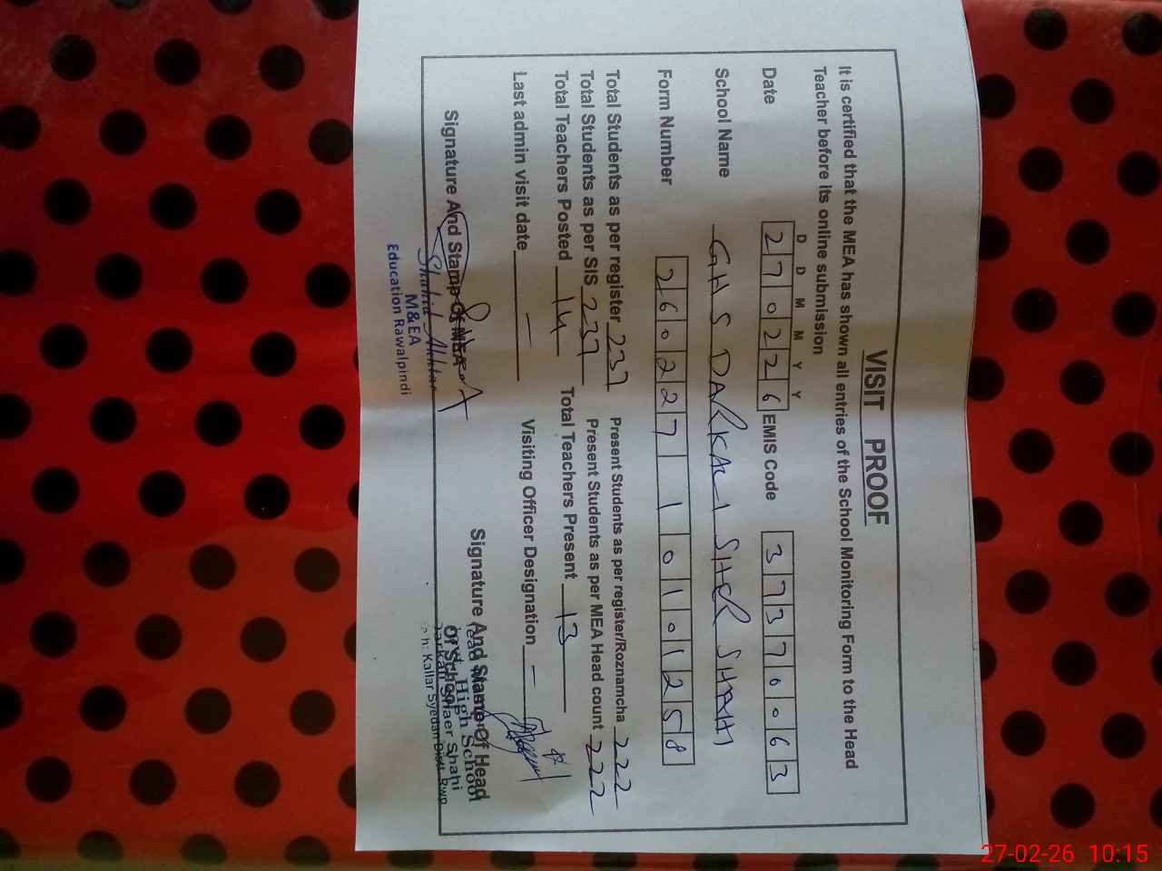 | EMIS Code: 37370063 | Name of School: GHS DARKALI SHER SHAHI | |||
