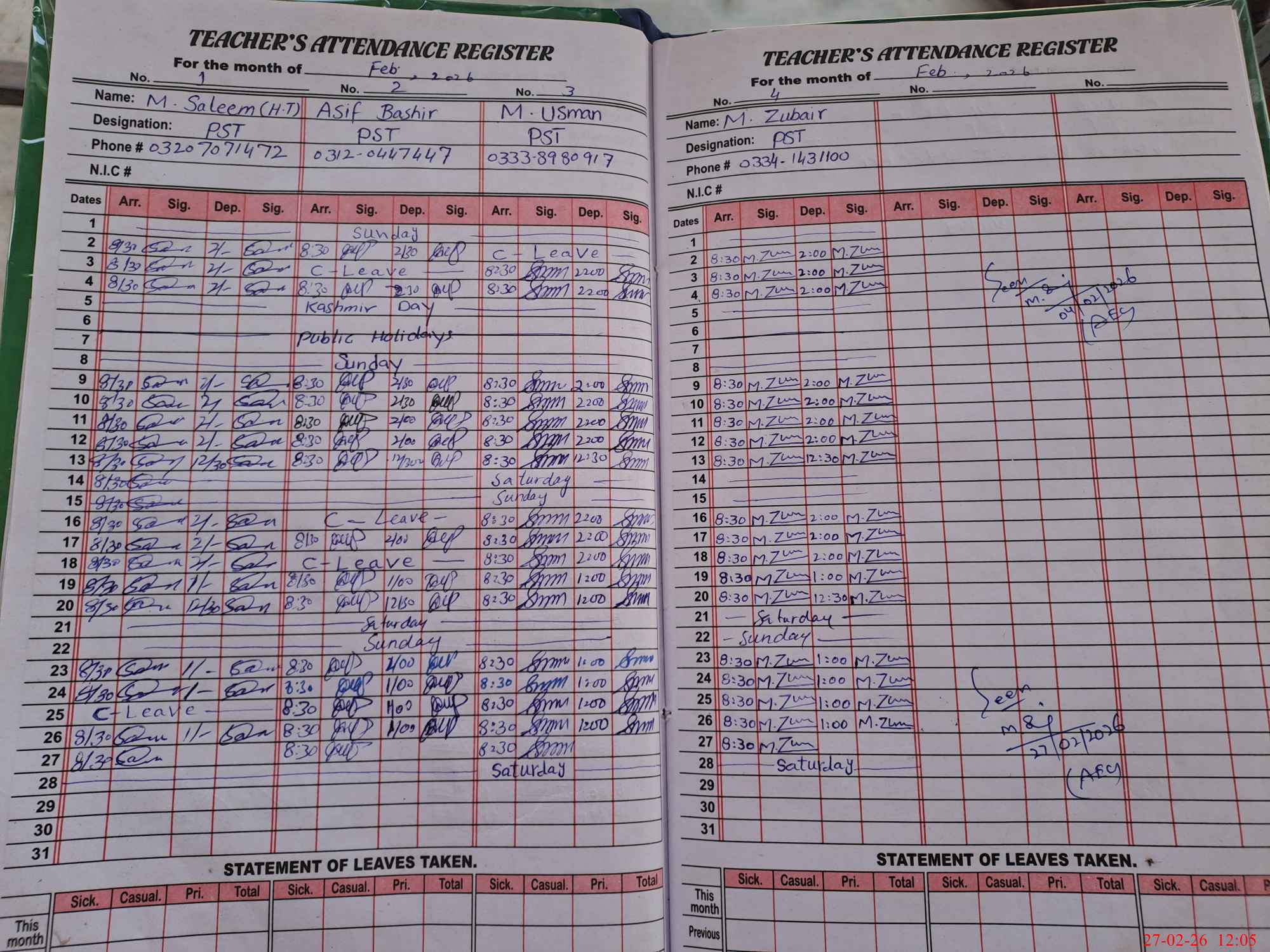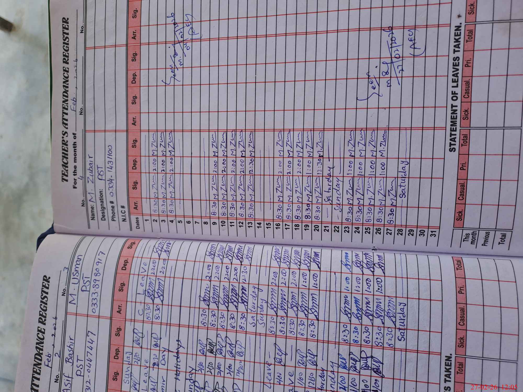 | Name: MU**** SA**** Designation: (School Headmaster's/Headmistress's) PST Phone/Cell Number: 03**** |