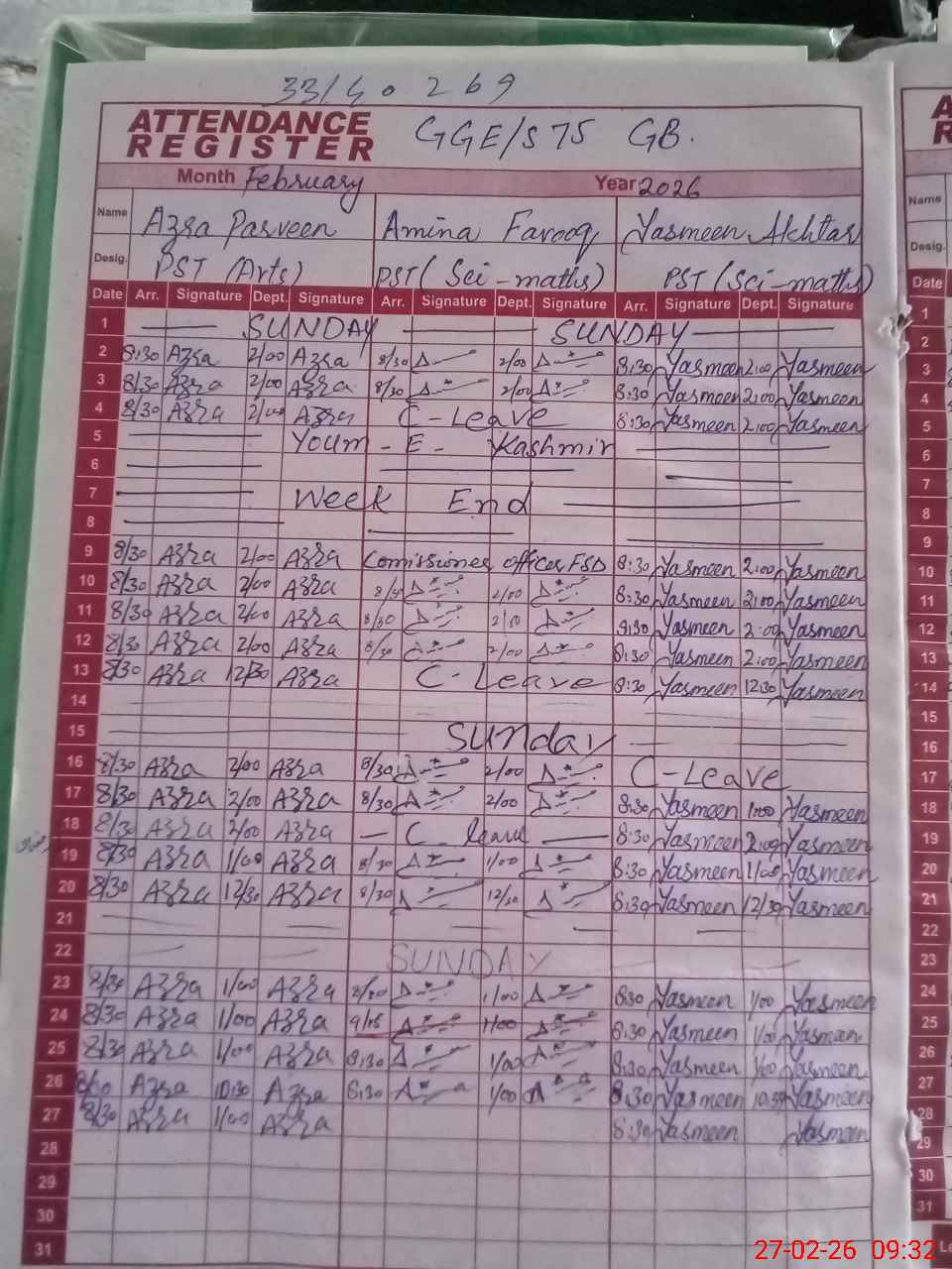 | 33**** | Am**** Fa**** | ESE Science | Contract | 0 | 0 | 0 | 0 | 0 | 0 | 0 | 0 | 0 | Absent (Un-Authorized) |