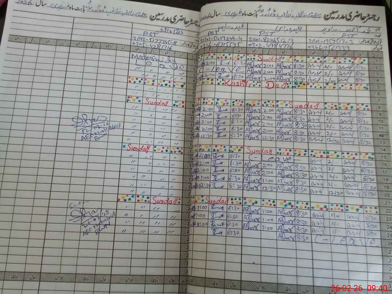 | CNIC | Full Name | Designation | R/C | Absence During Last Calender Month |