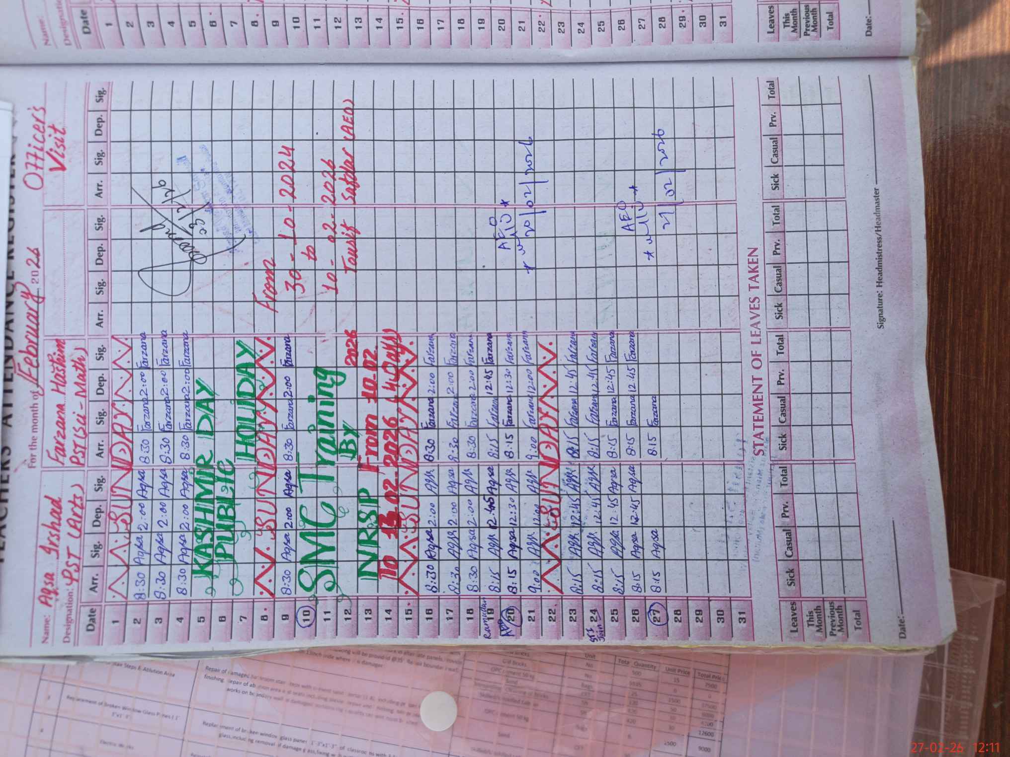 | Monitoring Date: 27-02-2026 | Start Time: 27-02-2026 11:43 AM | End Time: 27-02-2026 12:11 PM | Name of MEA: Mu**** Im**** | |