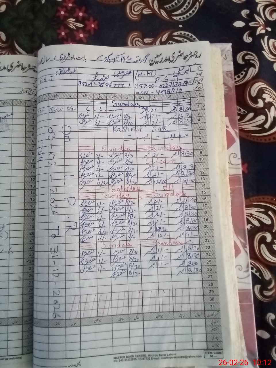 | Name: AB**** RA**** Designation: (School Headmaster's/Headmistress's) PST Phone/Cell Number: 03**** |