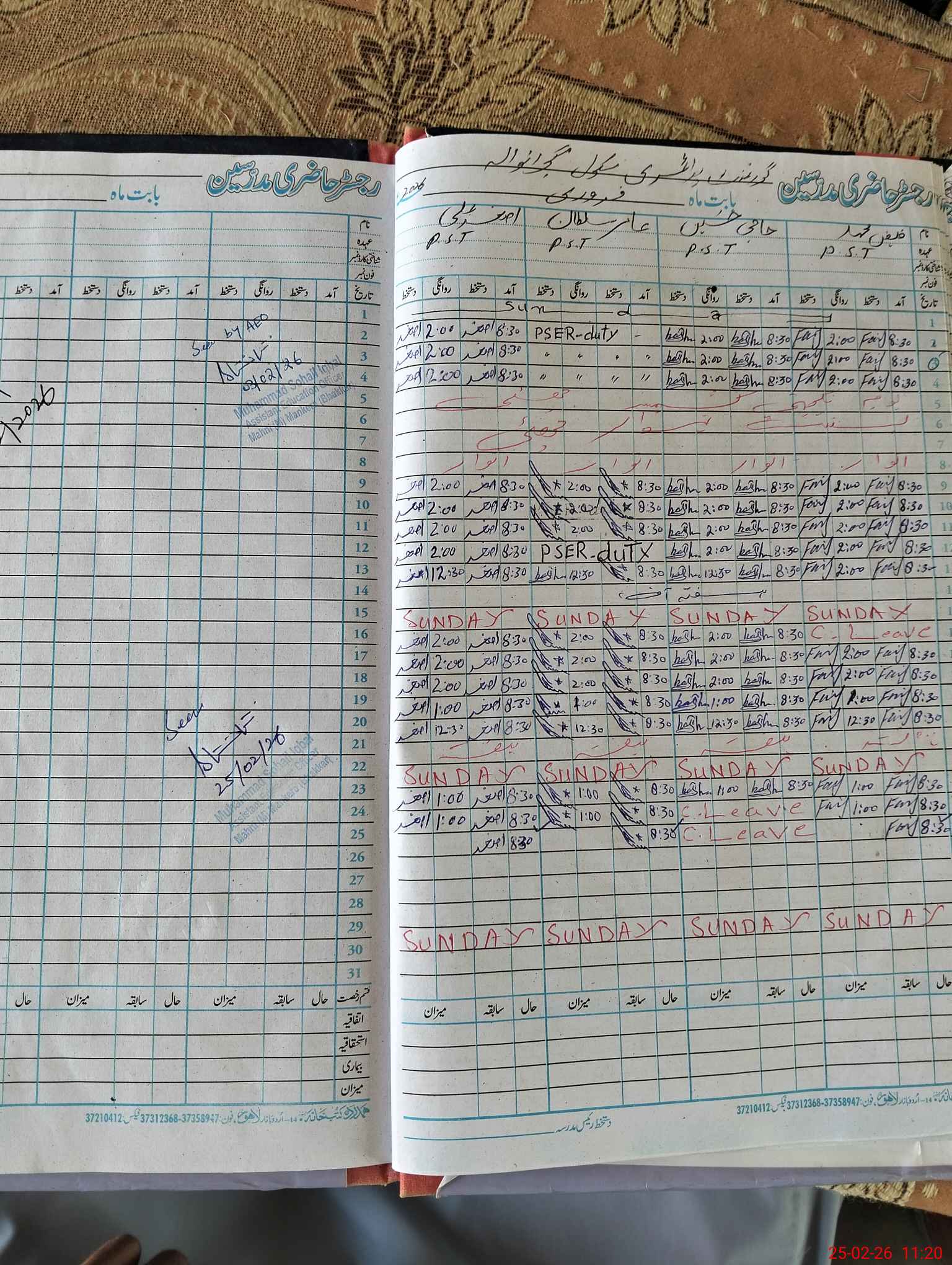 | CNIC | Full Name | Designation | R/C | Absence During Last Calender Month |