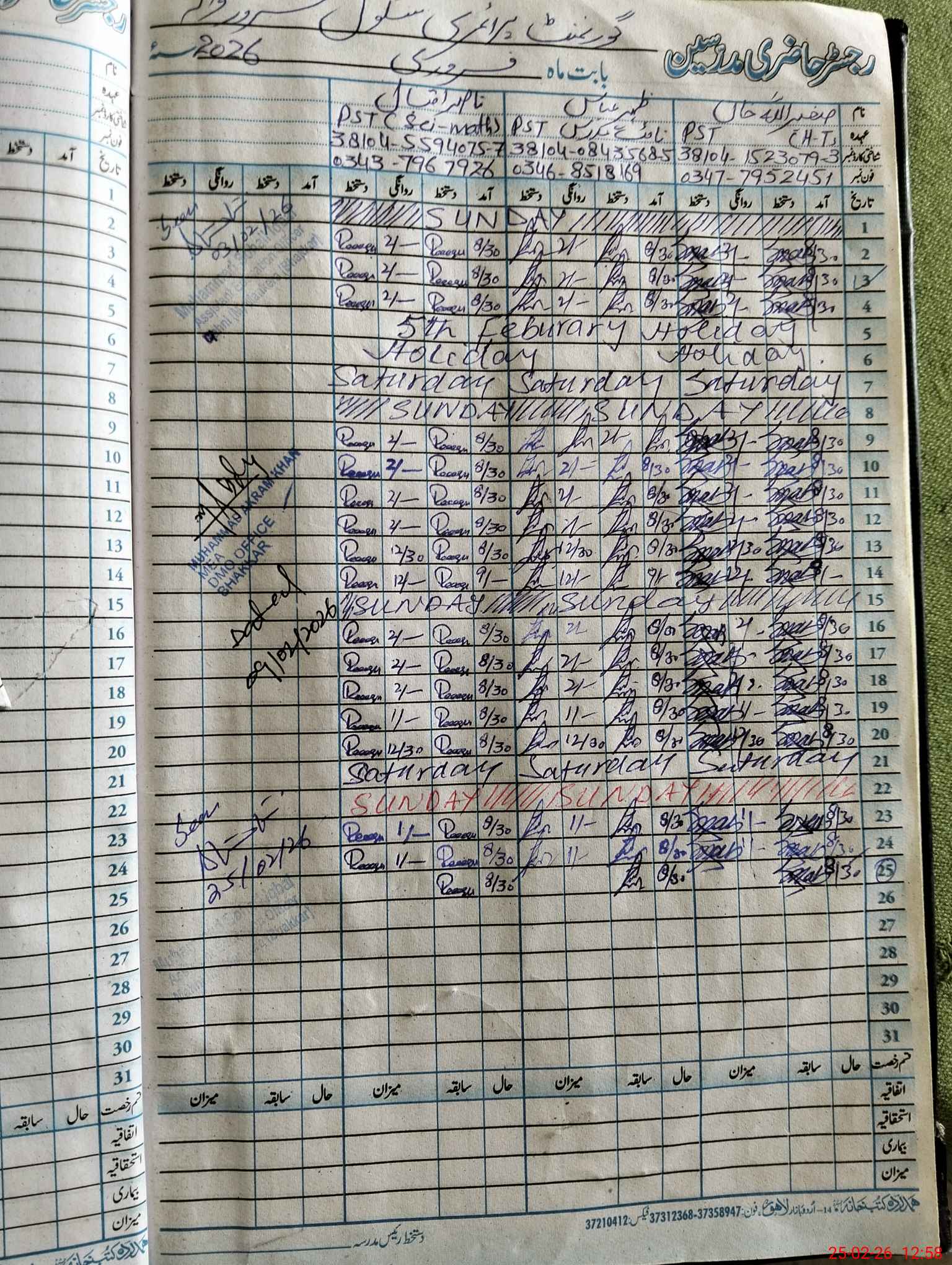 | Name: SA**** UL**** Designation: (School Headmaster's/Headmistress's) PTC/JV Phone/Cell Number: 03**** |