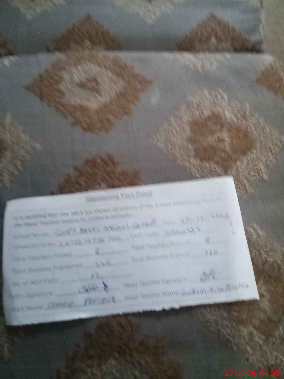 | Attendance Register | Head Teacher | MEA with School | Visit Proof |