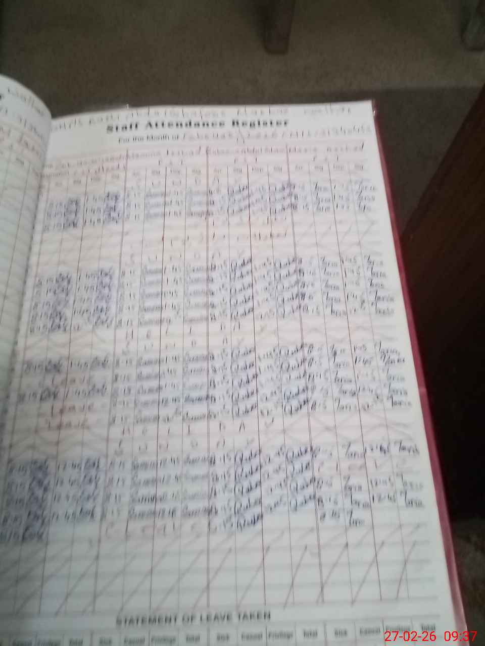 | Leave | Duty | Absent | Maternity | Medical | Ex- Pak |