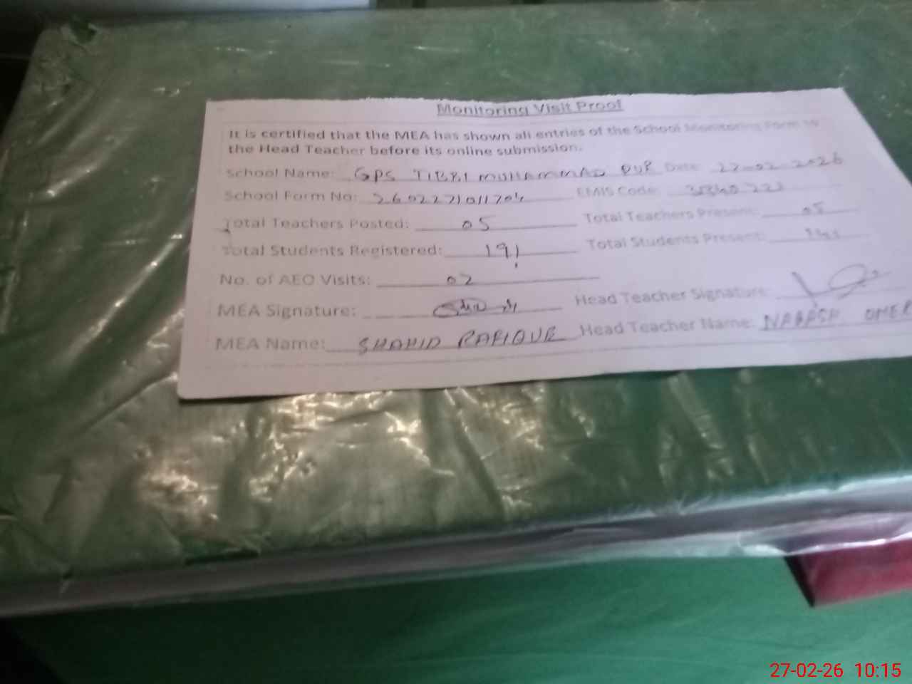 | EMIS Code: 31340221 | Name of School: GPS TIBBI MUHAMMAD PUR | |||