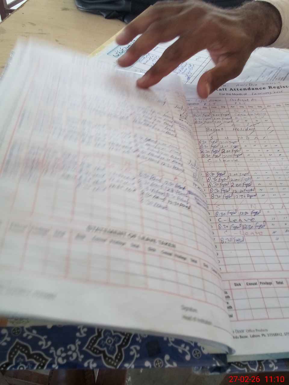 | CNIC | Full Name | Designation | R/C | Absence During Last Calender Month |